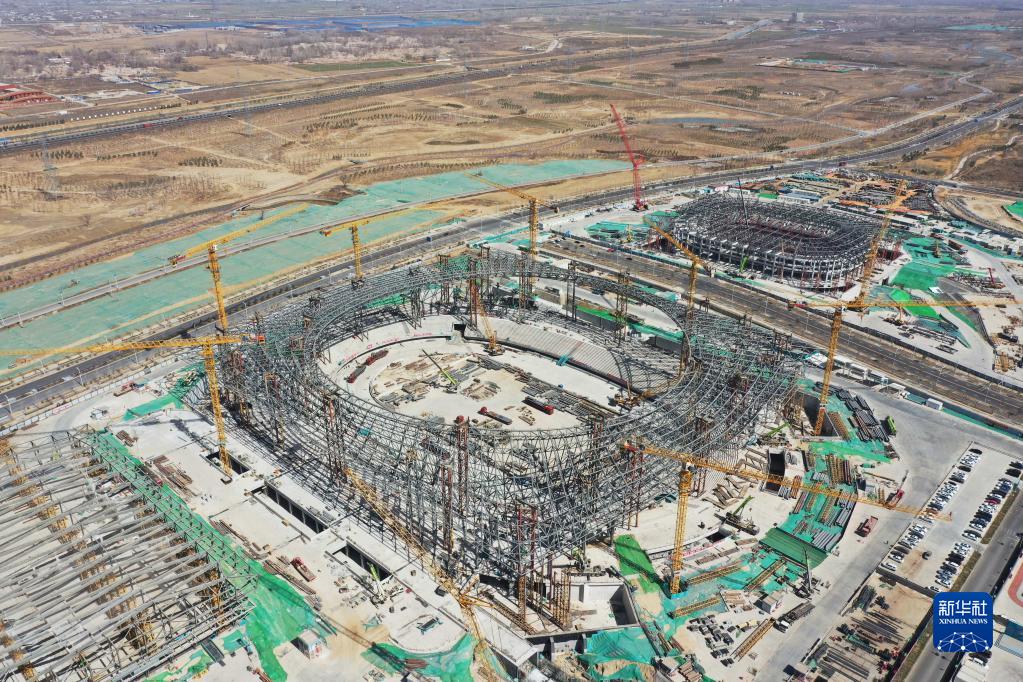 这是位于雄安新区启动区的雄安体育中心项目现场(3月15日摄,无人机照片)。