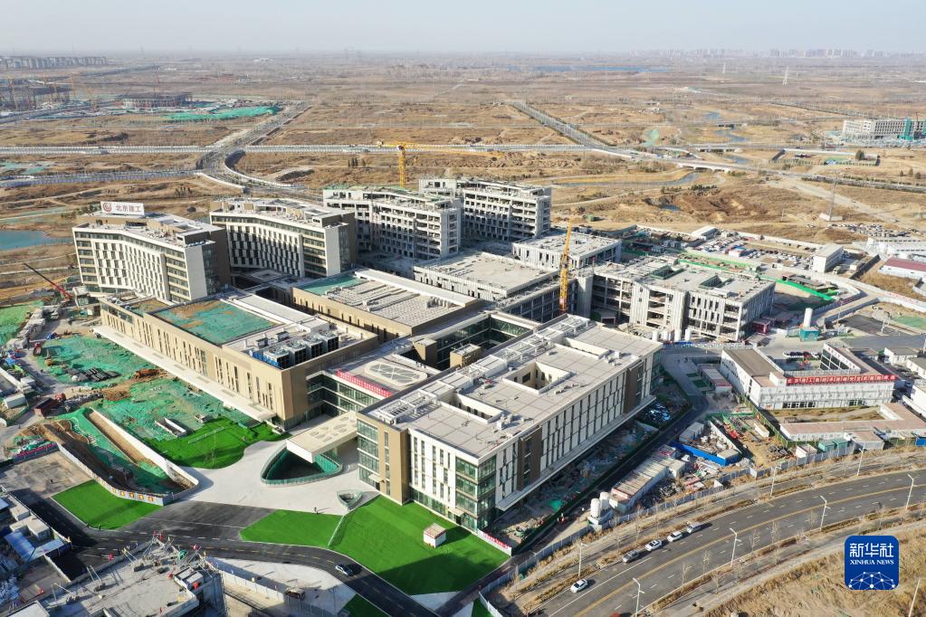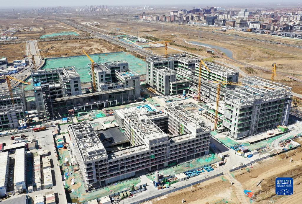 这是位于雄安新区启动区的雄安宣武医院项目现场(3月15日摄,无人机照片)。